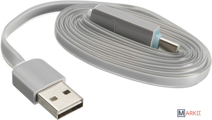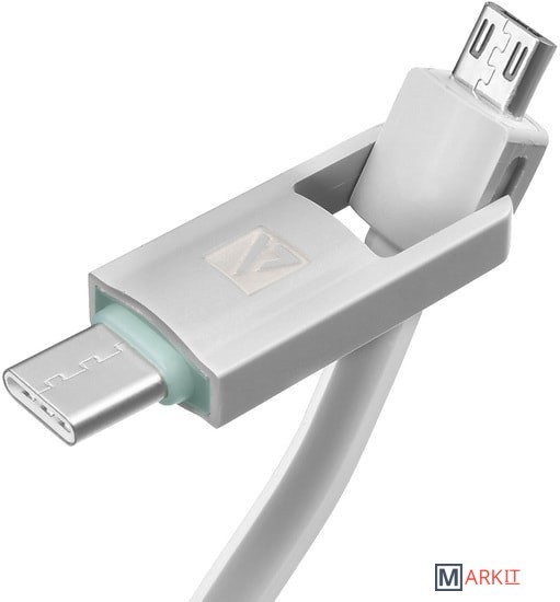Cменный коннектор 2-в-1 позволяет подключать устройства с Micro USB или Type-C одним кабелем.