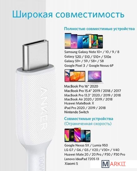 Markit » Кабели, адаптеры, разветвители » Кабель Anker PowerLine III USB C to USB C