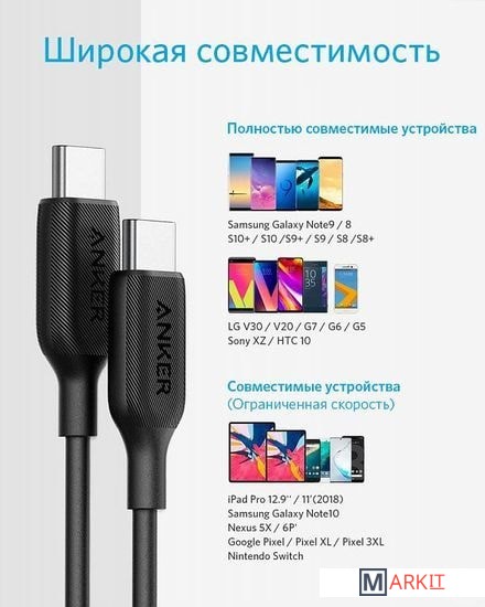 Markit » Кабели, адаптеры, разветвители » Кабель Anker PowerLine III USB-С/USB-C 60W