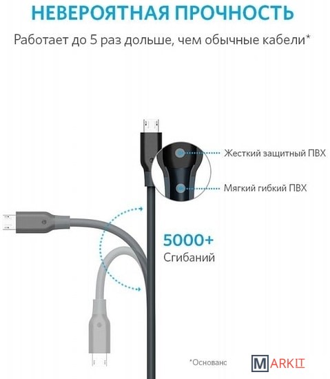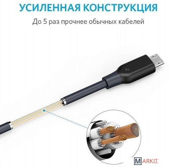 Markit » Кабели, адаптеры, разветвители » Кабель Anker PowerLine Micro USB (серый)