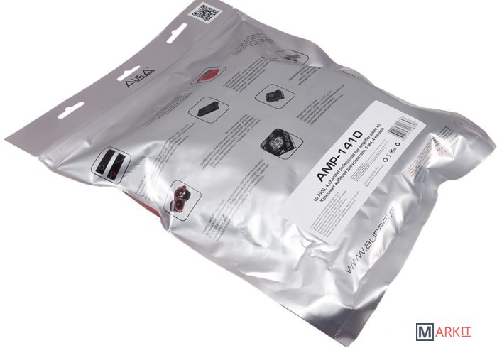 Профессиональный комплект для подключения 4-х канального усилителя.Силовой кабель 4AWG (20мм2) красный — 5 метров.Силовой кабель 4AWG (20мм2) черный — 1 метр.Держатель MiniANL + предохранитель 80A.RCA-кабель: 5 метров, 4 канала, витая пара (RCA-0450).Провод «remote» 18AWG (0,75мм2) синий — 5 метров.Клемма кольцевая для силового кабеля сечением 4AWG (20мм2): 2 шт.Клемма U-образная для силового кабеля сечением 4AWG (20мм2): 2 шт.Шестигранник.Стяжки — 10шт.Упаковка: зиплок-пакет.