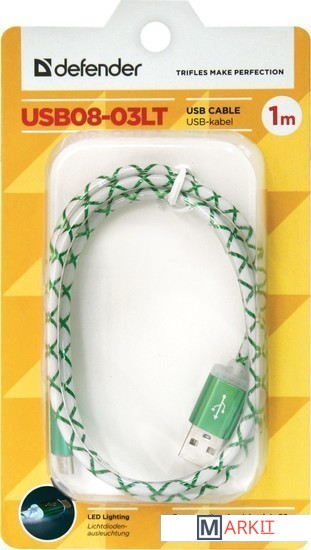 Markit » Кабели, адаптеры, разветвители » Кабель Defender USB08-03LT (зеленый) [87557]