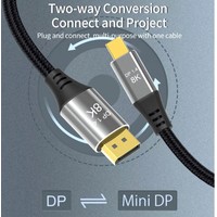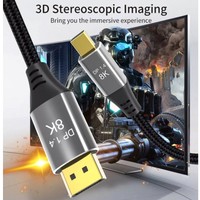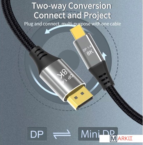 Поддерживает максимальное разрешение до видео 8K (7680x4320) при 60 Гц, 4K (3840x2160) при 144 Гц, 3D визуальные эффекты. Он совместим с версией DisplayPort 1.4, максимальная поддержка полосы пропускания 48 Гбит/сек, обратная совместимость с DisplayPort 1.2 и 1.1. Частота обновления 144 Гц широко используется в играх. Широкая совместимость и простота подключения, наш кабель Mini DP-DP 8K широко совместим с Macbook Pro, Macbook Air, Surface Pro, Mac Mini и другими ноутбуками с разъемом mini DisplayPort. Кроме того, возможна передача сигнала как с ваших ноутбуков с портом mini DP на дисплеи с портом DP, так и с компьютеров с портом DP на дисплеи с разъемом miniDP. Порт Mini DP вашего монитора должен поддерживать передачу видео.