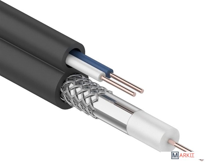 Кабель ККСВ-П + 2х0.5 мм REXANT предназначен для передачи телевизионных сигналов в системах видеонаблюдения с одновременным подключением питания и/или передачи сигналов управления.Кабель ККСВ-П + 2х0.5 мм состоит из радиочастотного (коаксиального) кабеля и двух жил питания. Коаксиальный кабеля 3с-2v состоит из медного монолитного проводника, вспененного диэлектрика, внешнего проводника из алюминиевых жил в виде оплетки и оболочки из ПВХ. Жилы питания (медные) монолитные в изоляции из ПВХ и оболочке из полиэтилена(PE). Коаксиальный кабель и жилы питания соединены между собой. Кабель имеет форму восьмерки.