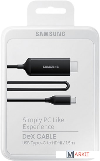Позволяет работать на Galaxy Note9 и Galaxy Tab S4 в режиме Samsung DeX, как на персональном компьютере. Для использования режима Samsung DeX устройство должно быть подключено к внешнему дисплею. DeX-кабель - это всё, что вам понадобится для активации режима Samsung Dex. Достаточно подключить USB Type-C разъём кабеля к совместимому смартфону или планшету, а разъём HDMI - к телевизору или монитору. Кабель обладает компактными размерами, которые позволят брать его с собой куда угодно.