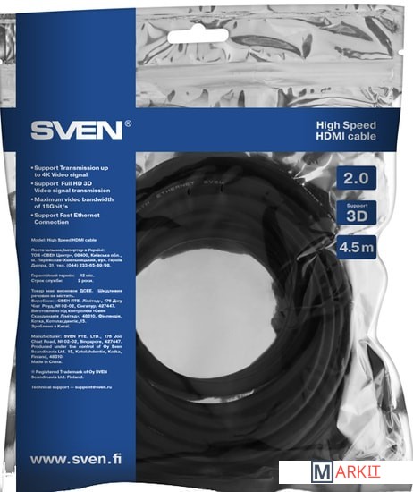 Markit » Кабели, адаптеры, разветвители » Кабель SVEN HDMI - HDMI High Speed 2.0 (4.5 м)