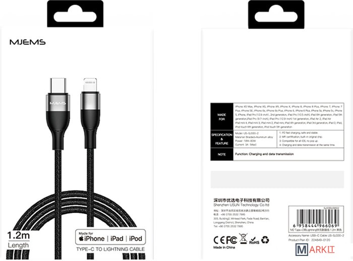 Markit » Кабели, адаптеры, разветвители » Кабель Usams M2 Type-C/Lighting US-SJ330 (черный)