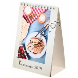 | Блокнот из мелованного картона, переплет на спирали сверху. Красочный рисунок, двухцветная печать дат (красный и черный), выделены выходные и праздничные дни. В деталях указана ширина x высота календаря. |