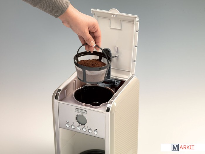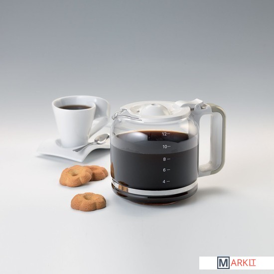 • Колба из закаленного стекла может вместить от 4 до 12 чашек кофе.• При помощи кнопок и LCD дисплея прибор запускается в работу. Можно запрограммировать время начала приготовления кофе на 24 часа вперед.• Режим паузы позволяет остановить процесс, если вы захотели выпить кофе, не дожидаясь пока доварится весь объем. Система "антикапля" не допустит проливания кофе, пока вы не вернете колбу на место.• Корзина для кофе съемная. Ее удобно заполнять кофейным порошком. Практичный многоразовый фильтр легко мыть.• Подогреваемая подставка поддерживает кофе горячим в течение получаса.