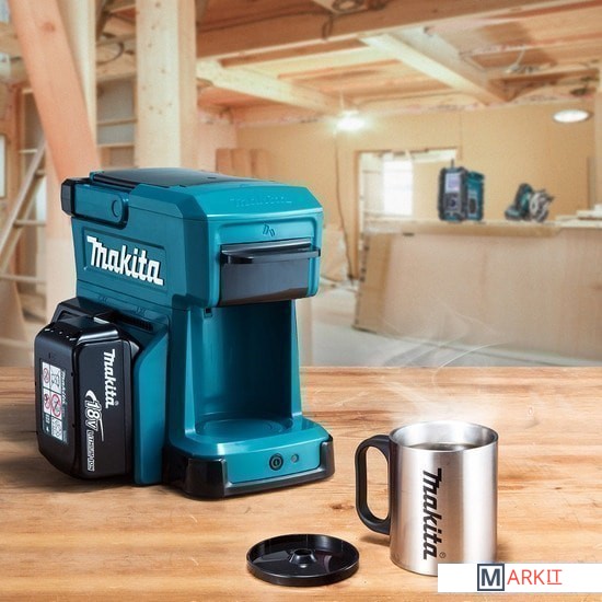 Аккумуляторная кофеварка DCM501Z (в комплектации не идёт АКБ). Работает от аккумуляторов 18 В LXT и 10,8 В CXT.Предусмотрена ручка для транспортировки.Есть возможность использовать чашки высотой до 90 мм.Защита от сухого хода (если залито недостаточно воды, кофеварка отключается).