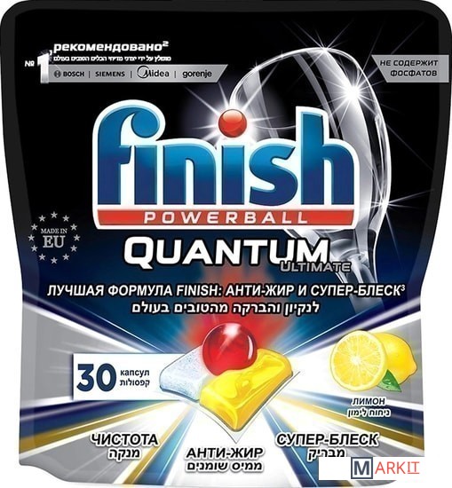 Markit » Средства для посудомоечных машин » Капсулы для посудомоечной машины Finish PowerBall Quantum Ultimate Лимон дойпак (30 шт)