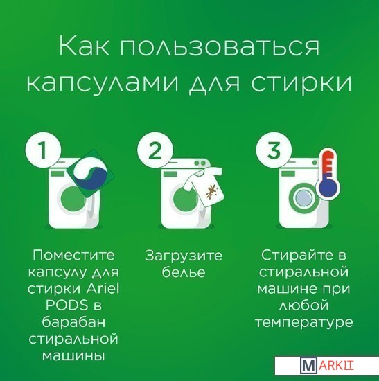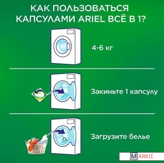 Первое средство для стирки с тремя раздельными компонентами, которые работают вместе. Они очищают, выводят пятна и придают тканям яркость. Компоненты находятся в отдельных секциях капсулы, что предотвращает их смешивание до начала стирки.