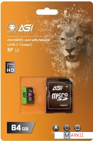 Markit » Карты памяти » Карта памяти AGI TF138 microSDXC AGI064GU1TF138 64GB (с адаптером)