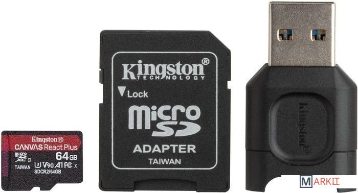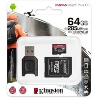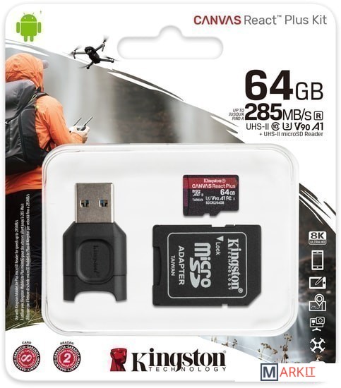 Markit » Карты памяти » Карта памяти Kingston Canvas React Plus microSDXC 64GB (с адаптером и кардридером)