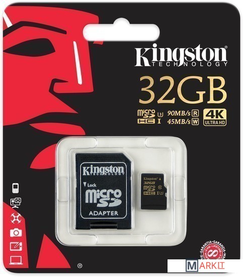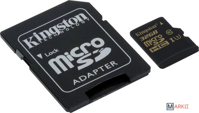 Markit » Карты памяти » Карта памяти Kingston Gold microSDHC UHS-I (Class 3) U3 32GB + адаптер [SDCG/32GB]