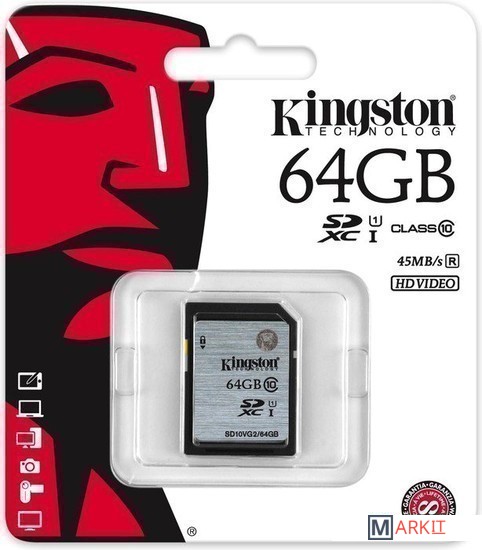 Markit » Карты памяти » Карта памяти Kingston SDXC (Class 10) 64GB (SD10VG2/64GB)