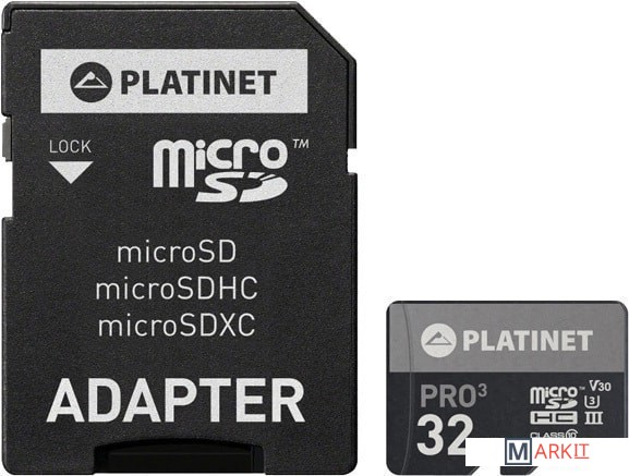 Markit » Карты памяти » Карта памяти Platinet PMMSD32UIII 32GB + адаптер