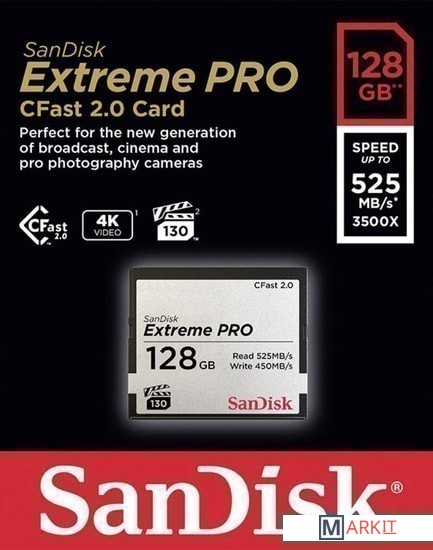 Markit » Карты памяти » Карта памяти SanDisk Extreme PRO CFast 2.0 SDCFSP-128G-G46D 128GB