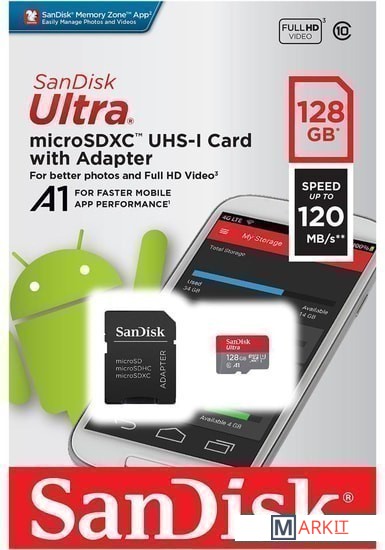 Markit » Карты памяти » Карта памяти SanDisk Ultra SDSQUA4-128G-GN6MA microSDXC 128GB (с адаптером)