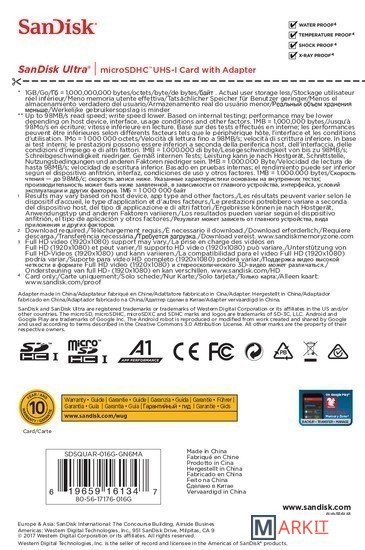 Markit » Карты памяти » Карта памяти SanDisk Ultra SDSQUAR-016G-GN6MA microSDHC 16GB (с адаптером)