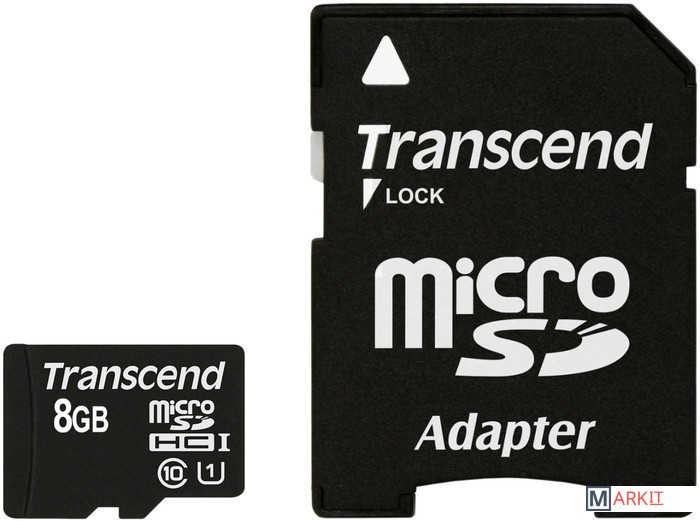 Markit » Карты памяти » Карта памяти Transcend microSDHC Class 10 UHS-I 8GB + адаптер (TS8GUSDU1)