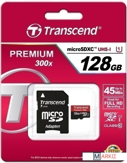 Markit » Карты памяти » Карта памяти Transcend microSDXC UHS-I 300x Premium (Class 10) 128GB (TS128GUSDU1)