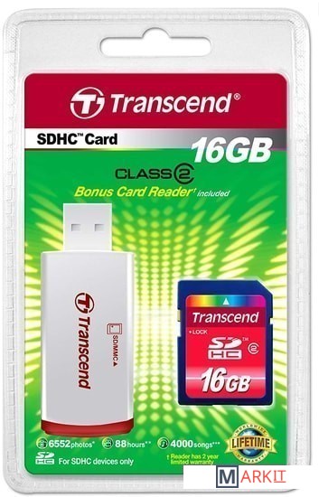 Markit » Карты памяти » Карта памяти Transcend SDHC Class 2 16GB TS16GSDHC2-P2 (с кардридером)
