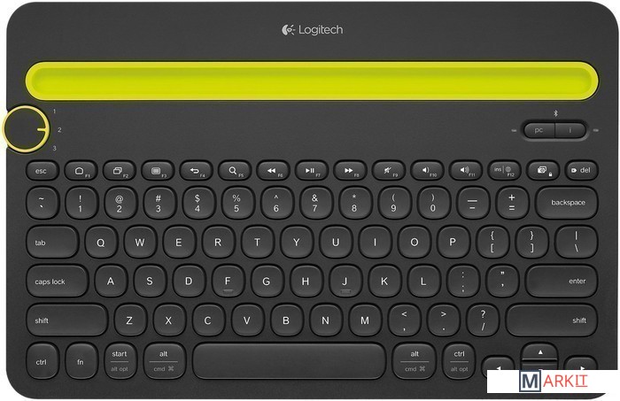 КЛАВИАТУРА БЕЗ КИРИЛЛИЦЫЭта универсальная Bluetooth-клавиатура поддерживает одновременное подключение до трех устройств с ОС Windows, Mac, Android или iOS, переключение между которыми осуществляется с помощью диска Easy-Switch.Встроенная подставка удерживает телефон или планшет под удобным для чтения углом и обеспечивает совместимость с большинством телефонов и планшетов толщиной до 10.5 мм и шириной до 258 мм.