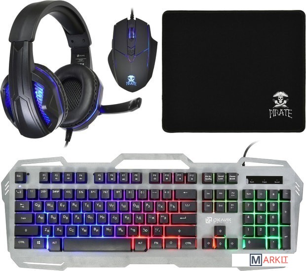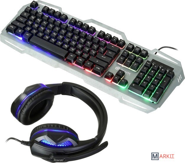 клавиатура + мышь с ковриком + наушники |