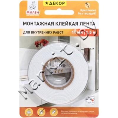 Markit » Товары для упаковки и маркировки » Клейкие ленты » Клейкая лента монтажная Милен 19мм x 1,5м для внутренних работ