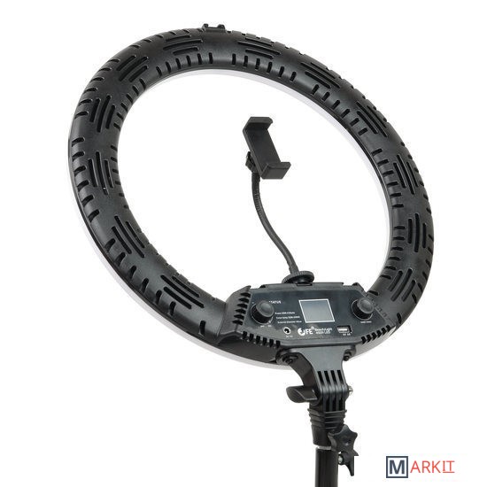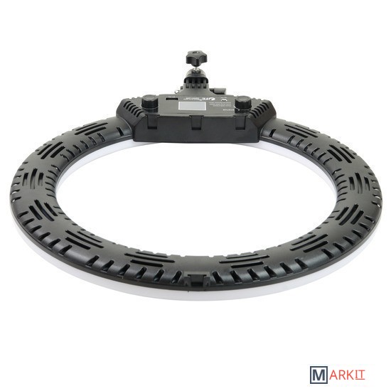 Falcon Eyes BeautyLight 450R LED – компактный биколорный кольцевой осветитель Ø45 см, на световой панели которого расположено 416 светодиодов «теплого» и «холодного» света, с плавно регулируемой цветовой температурой и мощностью светового потока от 10 до 100% (65 Вт).В осветительном приборе предусмотрены 5 динамических световых спецэффектов, которые разнообразят видеоряд и сделают съемку креативнее.Держатель смартфона, пульт дистанционного управления и сумка для переноски осветителя входят в комплект.Кольцевые осветители серии BeautyLight используются в качестве источника постоянного света различных сферах фото- и видеопроизводства.Такие осветители пользуются большой популярностью у блогеров, косметологов, визажистов, фотографов и видеографов, в задачи которых входит съемка людей крупным планом. Кроме того устройства часто задействованы в предметной съемке, записи мастер-классов, обзоров и многого другого.Мягкое бестеневое освещение выравнивает тон лица, сглаживает неровности и представляет объект съемки наилучшим образом. Кольцевая форма создает интересные блики в глазах или на блестящих поверхностях.