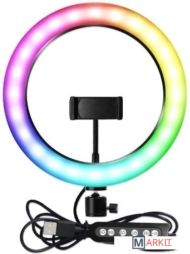 | Комплектация | - Кольцевая лампа со встроенным пультом на проводе;- Держатель для телефона;- Шарнир;- Штатив. |