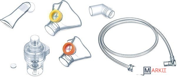 | Комплект поставки | мундштук; маски для детей и младенцев, угловой наконечник; распылитель, 10 фильтров, шланг. |