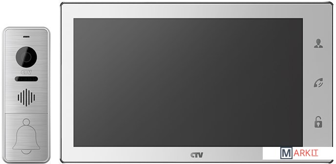 Комплект домофона с экраном 10" с поддержкой разрешения Full HD, Touch Screen, встроенным регистратором, сенсорным управлением, поддержкой облачного сервиса P2P. Цветной видеодомофон CTV-DP4102FHD(Черный), состоящий из цветного монитора CTV-M4102FHD(Черный) и цветной вызывной панели CTV-D4000FHD, работающих в формате видео AHD(1080P), предназначен для организации контроля доступа и двусторонней аудио-видео связи с посетителем. К монитору можно подключить одну или две вызывные панели, одну или две дополнительные внешние камеры, один или два датчика тревоги, а также до 3 дополнительных домофонных мониторов марки CTV, поддерживающих работу в дополнительном режиме.