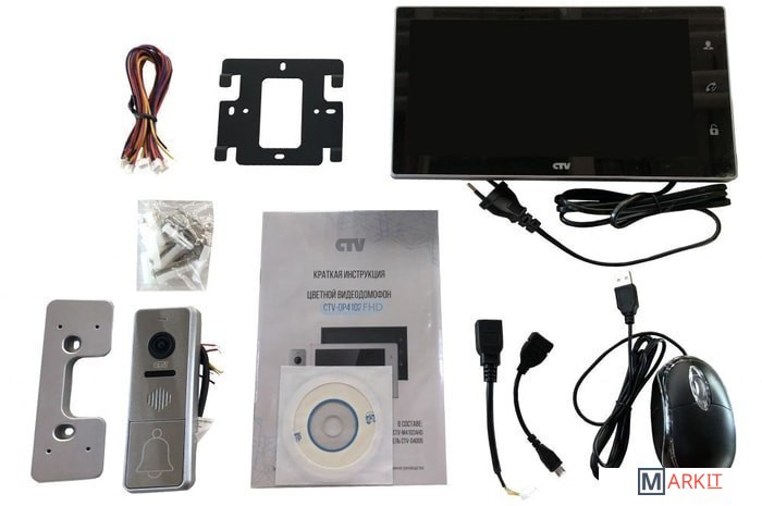 Комплект домофона с экраном 10" с поддержкой разрешения Full HD, Touch Screen, встроенным регистратором, сенсорным управлением, поддержкой облачного сервиса P2P. Цветной видеодомофон CTV-DP4102FHD(Черный), состоящий из цветного монитора CTV-M4102FHD(Черный) и цветной вызывной панели CTV-D4000FHD, работающих в формате видео AHD(1080P), предназначен для организации контроля доступа и двусторонней аудио-видео связи с посетителем. К монитору можно подключить одну или две вызывные панели, одну или две дополнительные внешние камеры, один или два датчика тревоги, а также до 3 дополнительных домофонных мониторов марки CTV, поддерживающих работу в дополнительном режиме.