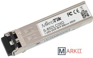 SFP трансивер 1.25G с длиной волны 850nm и разъемом dual LC, длина кабеля до 550 метров для многомодного кабеля. Имеется функция DDM.