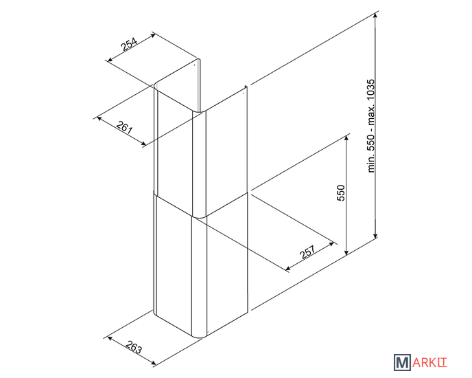 Воздуховод (2 шт).Размеры: (550min - 1035max) х 263 х 257 мм.