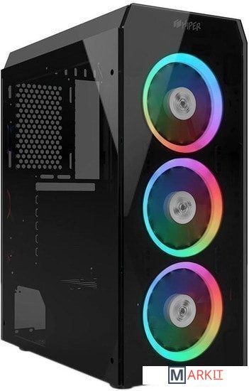 HIPER HG-C106RGB — это корпус формата Mid-Tower ATX с двумя панелями из закаленного стекла и тремя вентиляторами с подсветкой RGB