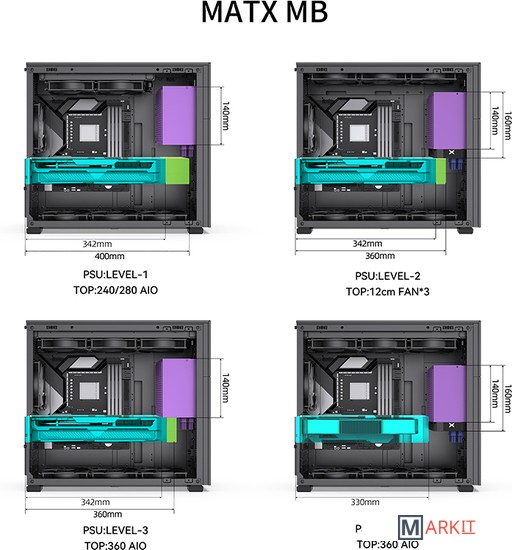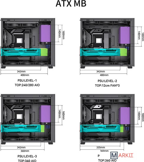 Поддерживаемые СЖО сверху: 240 - 360 ммснизу: 240 - 360 ммсзади: 120 мм