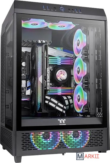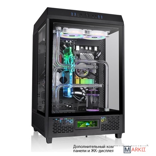 The Tower 500 - это корпус вертикальной конфигурации с тремя панелями из закаленного стекла толщиной 4 мм для панорамного обзора. Комплектуется двумя предустановленными стандартными 120-мм вентиляторами. Поддерживает материнские платы E-ATX размером до 12" x 12» и имеет максимальную гибкость для дальнейших расширений. Он также может работать в паре с отдельно продаваемым 3,9" ЖК-дисплеем для обеспечения максимально эффектного внешнего вида вашего ПК.Универсальный интерьер Tower 500 разработан с учетом потребностей как систем жидкостного охлаждения "все в одном", так и кастомных решений. Передняя и боковые панели выполнены из закаленного стекла толщиной 4 мм, что обеспечивает одновременную защиту и идеальную видимость внутренних комплектующих.Сделайте визуальные эффекты вашего Tower 500 максимально эффективными, дооснастив его ЖК дисплеем на 3,9 дюймов. С помощью программного обеспечения TT RGB Plus 2.0 можно выводить любые изображения и GIF анимацию. Последняя версия программы включает климатический режим и режим времени, что позволяет пользователям расширить возможности использования ЖК-дисплеев.Прилагающийся кронштейн радиатора может быть установлен с правой стороны, для поддержки СВО готового типа с радиатором 360-мм. Внутреннего пространства достаточно для конфигурации вдув-выдув, когда на радиатор можно установить вентиляторы с обоих строн (максимум до 6шт). Правую боковую панель можно откинуть на 180 градусов, чтобы обеспечить прямой отвод тепла от защитной сетки и тем самым еще больше усилить вентиляцию.Вертикальная конструкция корпусов серии Tower использует эффект дымохода для более естественного и быстрого отвода тепла. Благодаря переосмысленному дизайну Tower 500 вы можете спокойно добиться отличного охлаждения системы без лишних хлопот.Компания Thermaltake всегда проводит стресс-тесты своего оборудования в жестких условиях для обеспечения высокого качества выпускаемой продукции. Tower 500 были протестирован при 100% полной нагрузке в течение 30 минут, с самыми мощными на время проведения теста CPU, GPU и материнской платой, при этом мы использовали потребительскую конфигурацию, что позволило нам проверить, как корпус работает в реальных условиях.Чтобы повысить эффективность охлаждения, предотвращая перегрев CPU и GPU в корпусе штатно установлены 2 мощных вентилятора на задней панели.Корпус, покрыт семью быстросъемными магнитными фильтрами, не пропускающими пыль, сохраняя комплектующие чистыми долгое время. Быстросъемный механизм делает очистку простой и быстрой, позволяя пользователям тратить меньше времени на обслуживание.В дизайне корпуса все компоненты съемные. Теперь сборка компьютера может быть простым и не утомительным занятием благодаря разборной модульной конструкции..