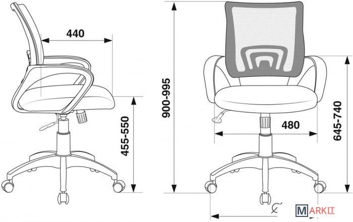 Высота спинки 44.5 см