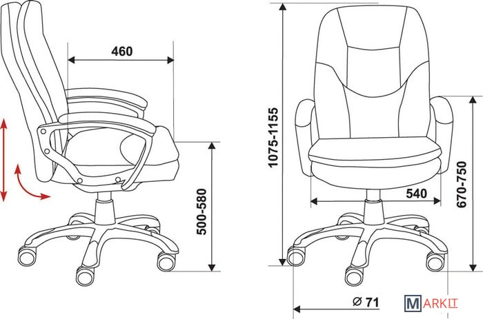 | Регулируемый наклон спинки | ✘ |