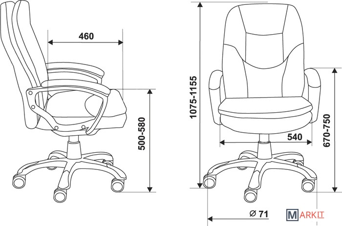 | Высота кресла | 107.5 — 115.7 см |