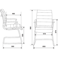 - Хромированный металлический каркас, полозья и подлокотники (с пластиковыми накладками)- Ограничение по весу: 100 кг