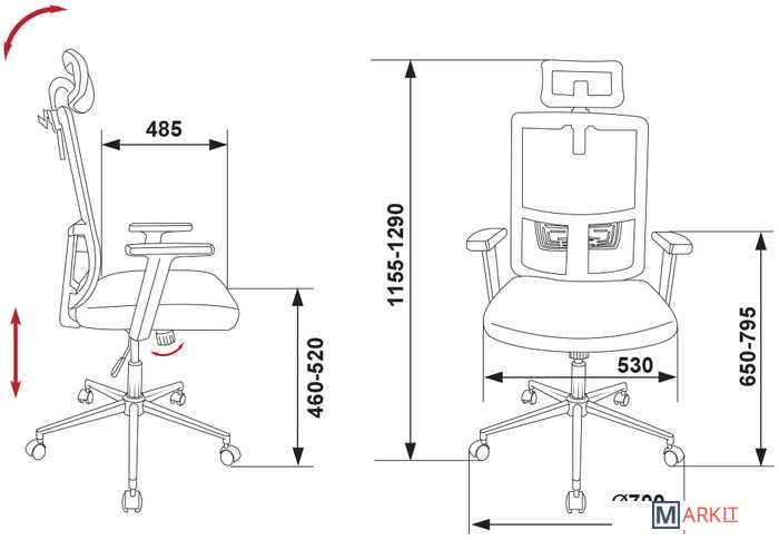 | Регулируемый наклон спинки | ✘ |
