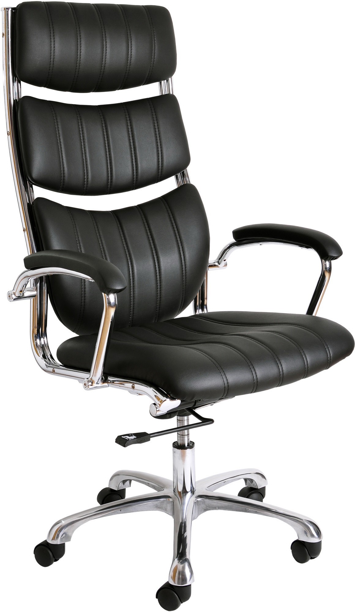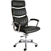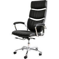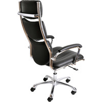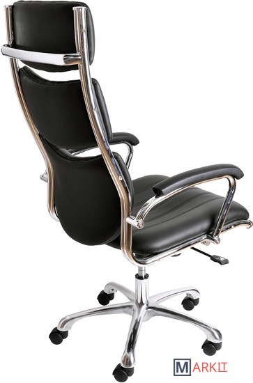 Кресло выполнено из полиуретановой кожи (ЭКО-кожа) и снабжено подлокотниками. В кресле используется современный механизм с хромированными вставками, который позволяет не только качаться, но и производить фиксацию изделия в любом положении. Также механизм позволяет регулировать жесткость качания в зависимости от веса сидящего. Кресло снабжено изящной хромированной крестовиной и хромированным газ-лифтом, с помощью которого регулируется высота. Может комплектоваться полиуретановыми роликами для паркета и ламината, а также изящными хромированными роликами.