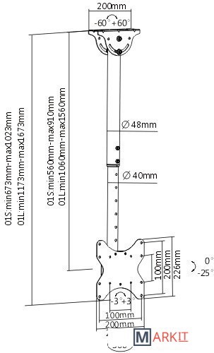 Расстояние от стены (потолка) 1 060 — 1 560 мм