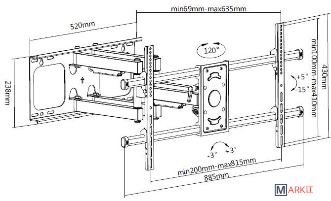 | Расстояние от стены (потолка) | 69 — 635 мм |