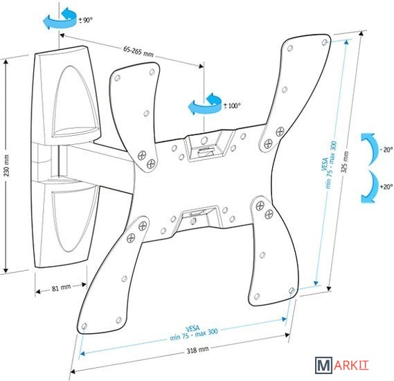 | Совместимость с креплением VESA | 75x75, 100x100, 200x100, 200x200, 200x300, 300x200, 300x300 |
