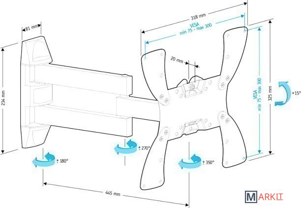 | Расстояние от стены (потолка) | 60 — 445 мм |